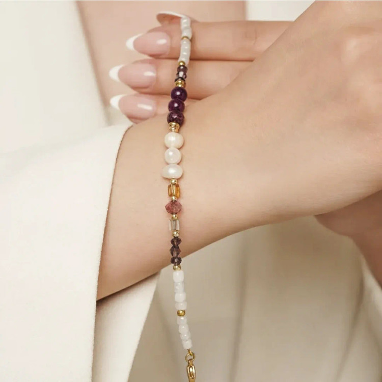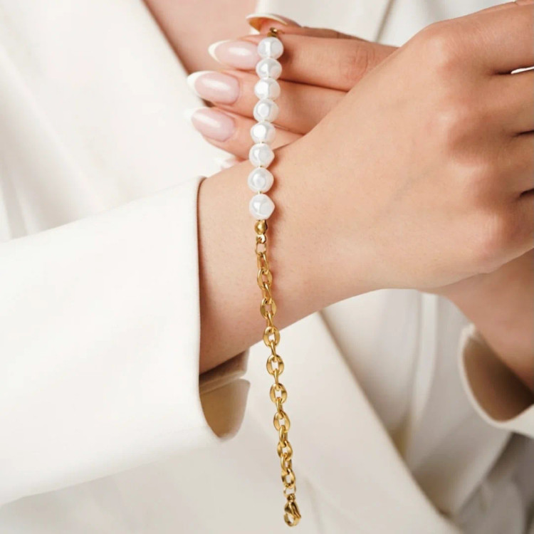 دستبند مروارید نشان همراه با زنجیر طلایی رنگ