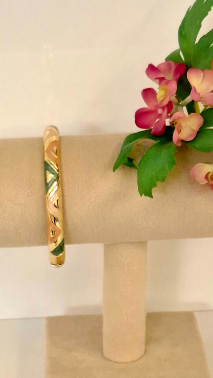 💐 دستبند النگویی میناکاری شده اعلا 😊🌺 شامل رنگ های سبز، طلایی و کرم رنگ🤎💛💚. جنس محصول از استیل طلایی براق ✨و درخشان همراه با نقش و نگار میناکاری💚 شده است. سایز محصول برای اندازه دور مچ 15.5 تا 17 سانتی متری مناسب می باشد 👌🏻😊. نحوه باز و بسته شدن دستبند به صورت قفلی می باشد🌹مشخصات این بَنگل : رنگ ثابت، ضد حساسیت و با کیفیت بسیار عالی میباشد✨😊👌🏻. در صورت داشتن هر گونه مشکلی، این محصول ضمانت مرجوعی دارد🚚امکان ارسال به سراسر نقاط ایران وجود دارد. 🎁