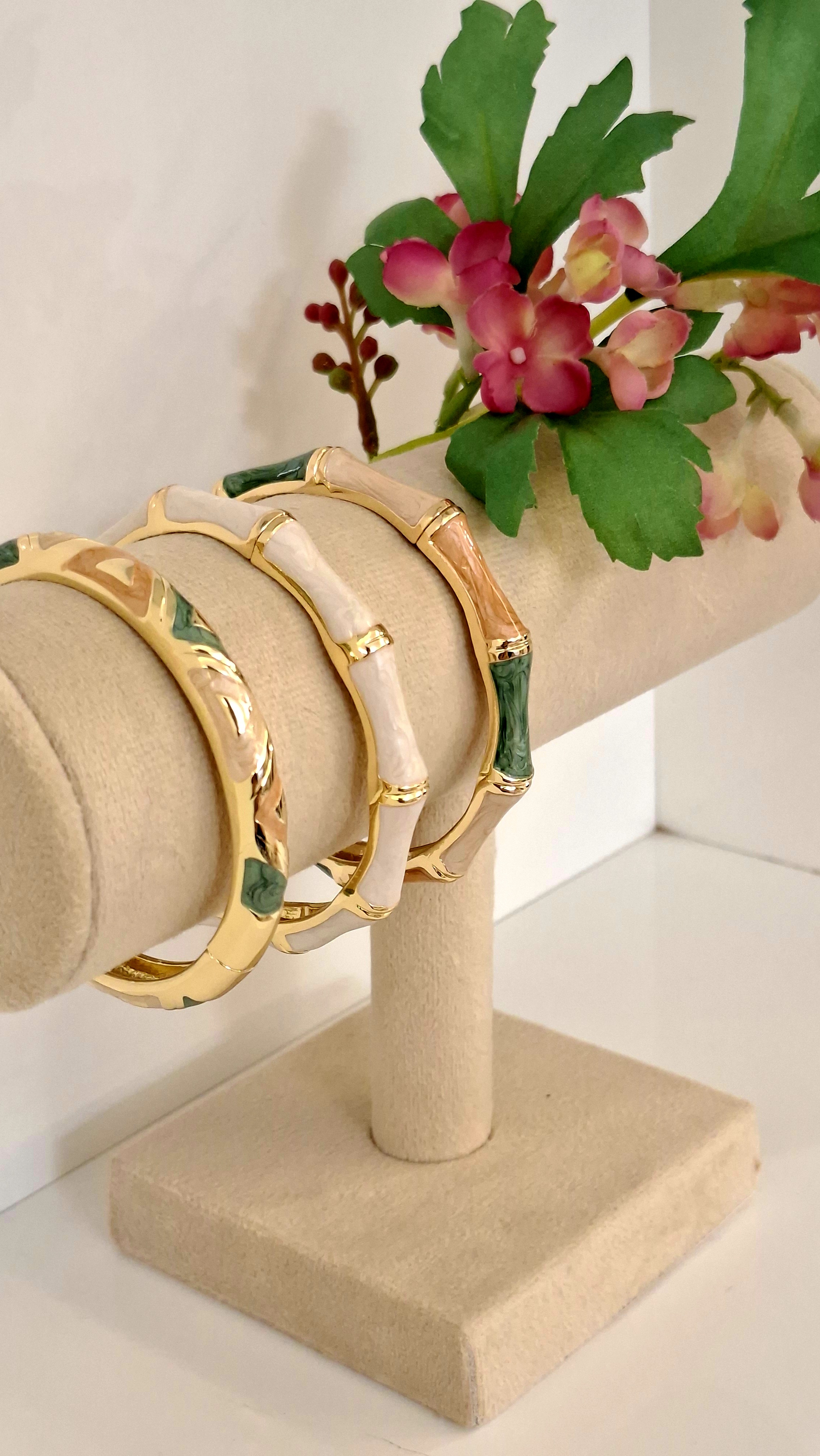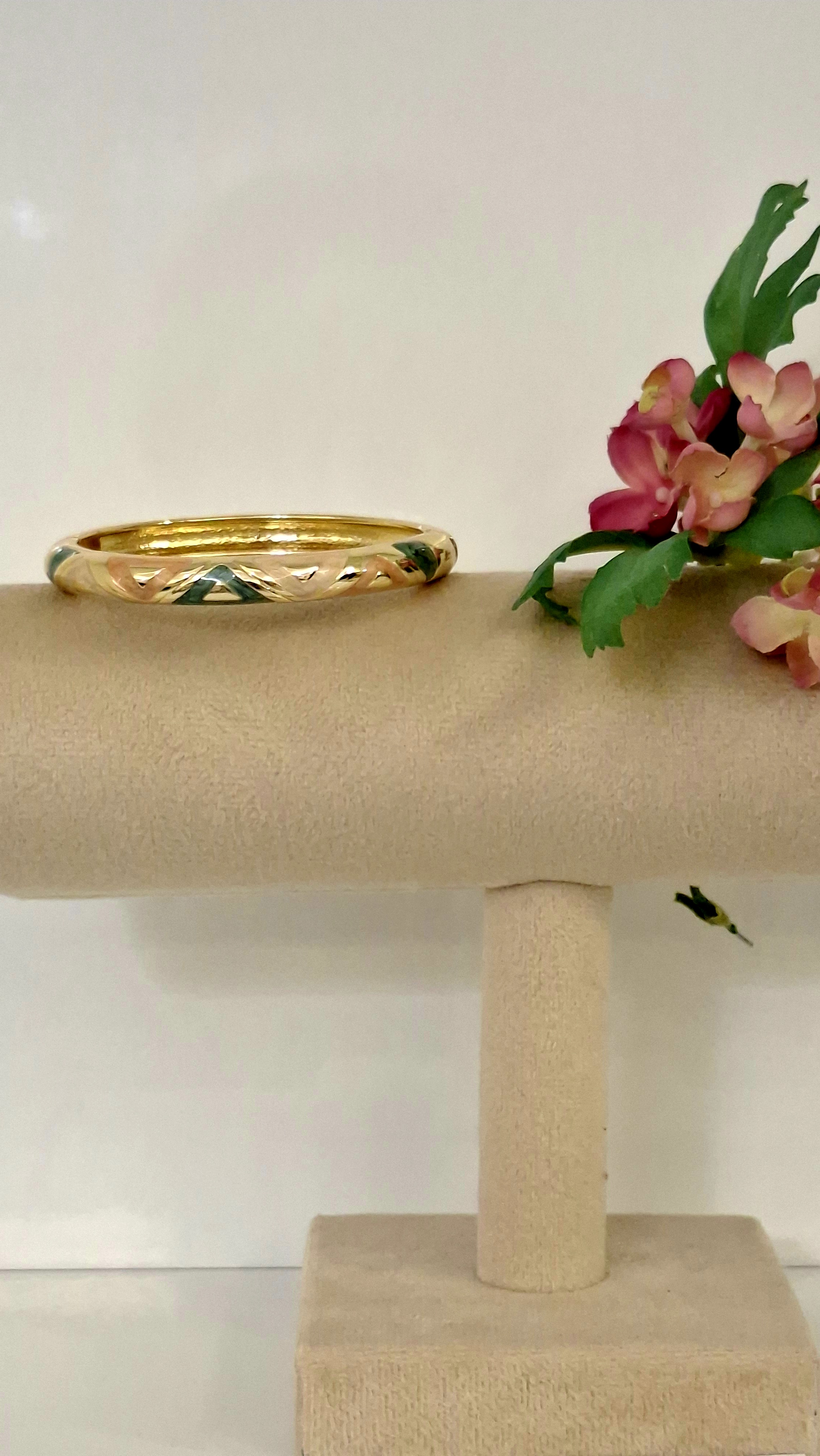 💐 دستبند النگویی میناکاری شده اعلا 😊🌺 شامل رنگ های سبز، طلایی و کرم رنگ🤎💛💚. جنس محصول از استیل طلایی براق ✨و درخشان همراه با نقش و نگار میناکاری💚 شده است. سایز محصول برای اندازه دور مچ 15.5 تا 17 سانتی متری مناسب می باشد 👌🏻😊. نحوه باز و بسته شدن دستبند به صورت قفلی می باشد🌹مشخصات این بَنگل : رنگ ثابت، ضد حساسیت و با کیفیت بسیار عالی میباشد✨😊👌🏻. در صورت داشتن هر گونه مشکلی، این محصول ضمانت مرجوعی دارد🚚امکان ارسال به سراسر نقاط ایران وجود دارد. 🎁
