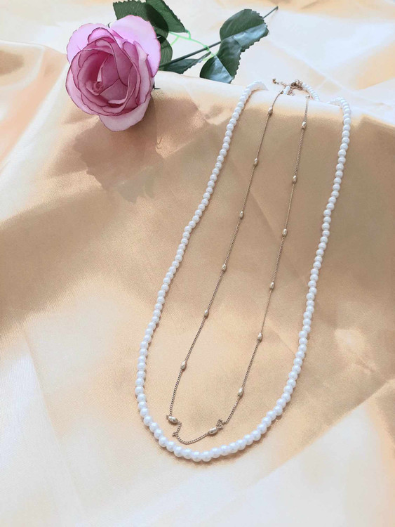 🤎 گردن آویز دو لاین مرواریدی ، همراه با زنجیر طلایی 🤎این محصول وارداتی کشور هندوستان بوده و به صورت گردن بند رو مانتویی ✨😊 قرار می گیرد.بسیار زیبا و خوش نما می باشد. 😍🎊