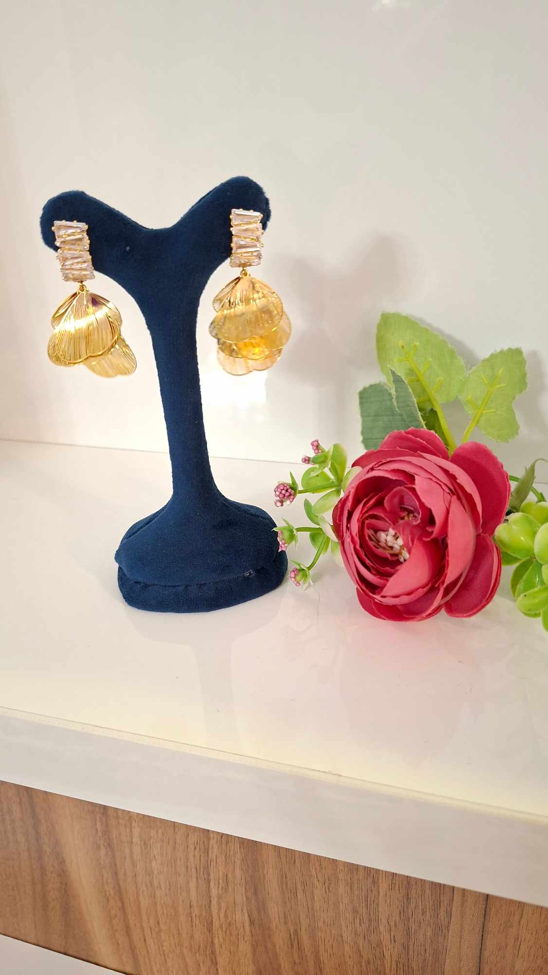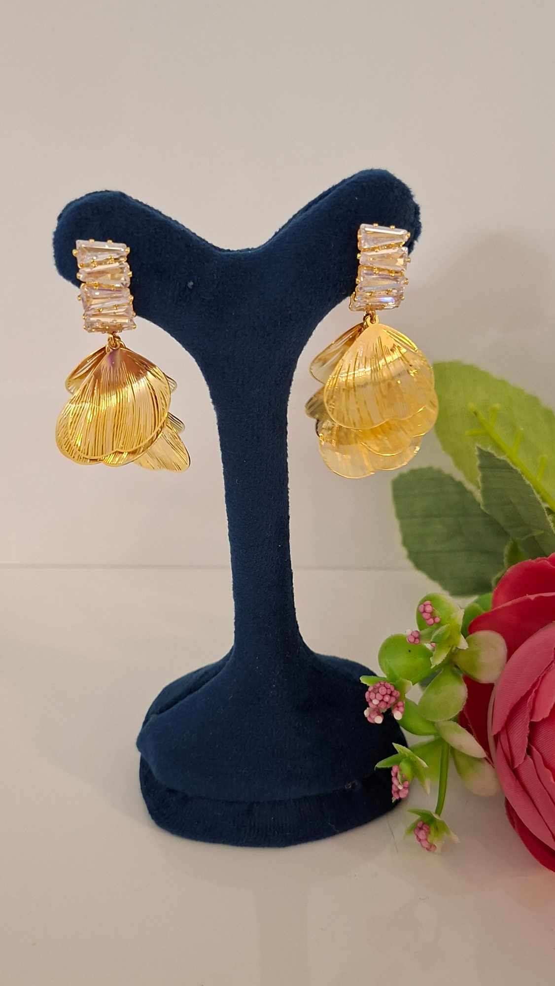 💫 گوشواره بسیار زیبا و مجلسی : این محصول بسیار پر کار بوده و دارای دو بخش جواهر نشان🌠 و استیل طلایی رنگ می باشد😍 این گوشواره با کیفیت A 👍، ضد حساسیت👌 و رنگ ثابت 💛می باشد. ارسال به سراسر نقاط کشور 🚚🥰