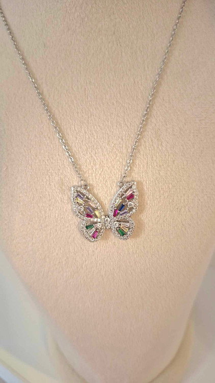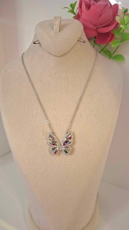 🦋 گردن آویز طرح پروانه ای زیبا 🦋 با جنس بسیار عالی 🌺 تمام جواهر نشان، با رنگبندی بسیار ملیح و چشمگیر 💐 جنس این محصول از استیل ضد زنگ بوده و بدون حساسیت می باشد👌😍 این محصول تضمینی بوده 💯و ارسال به سراسر نقاط کشور وجود دارد 🚚👏🎉